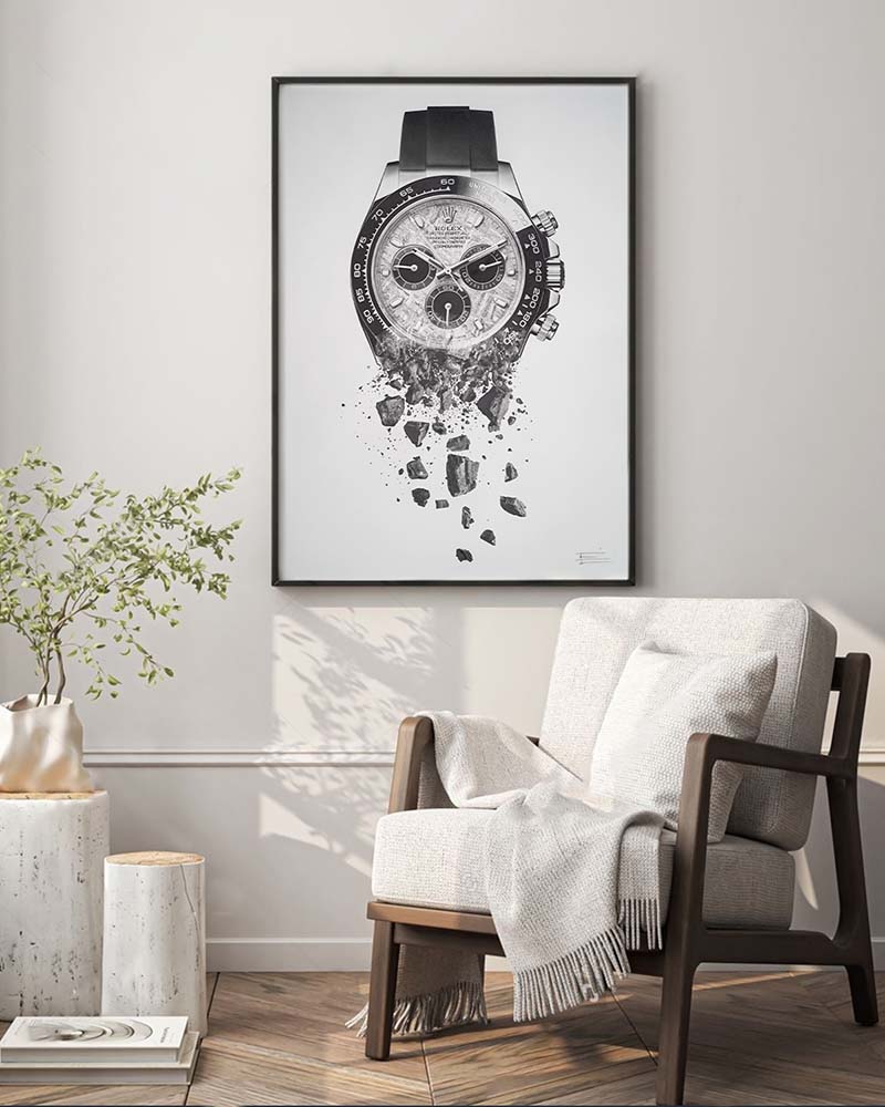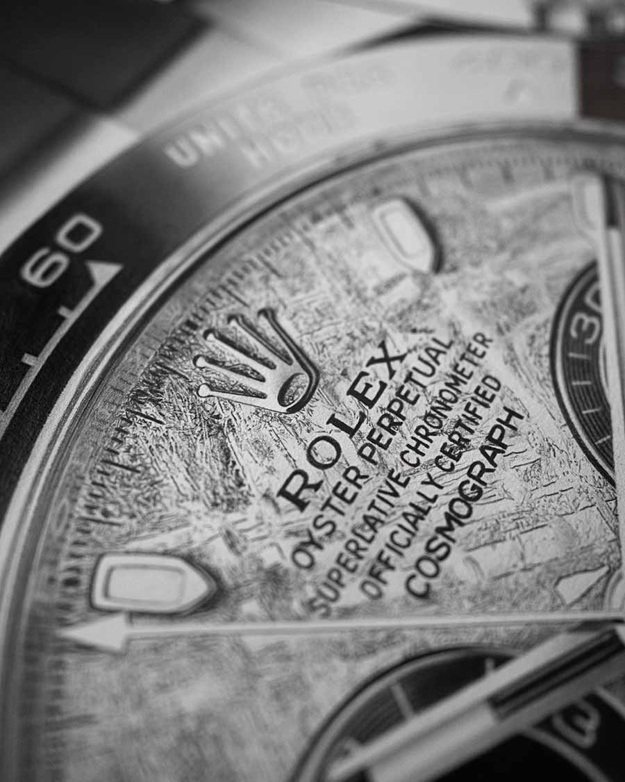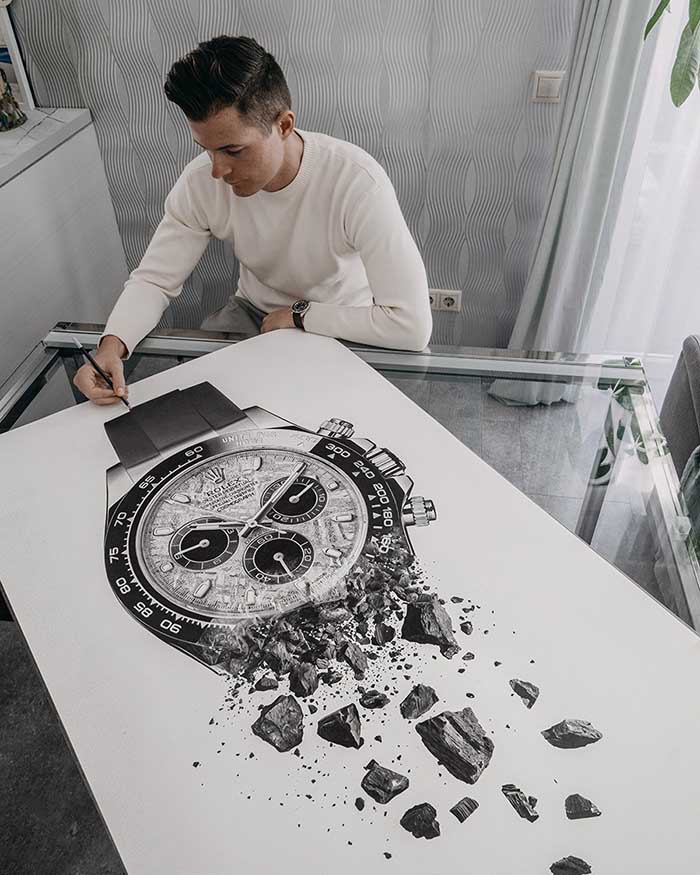 I created this piece as a continuation of my abstract collection. The meteorite dial transforms into real stones from the sky. My idea was, "What would it look like if the entire watch were made of this precious and rare stone?" The final result reminds me of something floating in the galaxy.